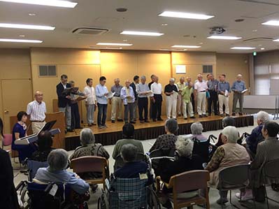 今日は男声合唱フロイデの有志と一緒に「老人施設」へ慰問コンサートに出かけた。朝からしっかり練習をして本番に臨んだ。施設の皆さんにもとても喜んでいただき、アンコールの大きな声もあり、大変歌い甲斐があった。(S氏のfacebookより) |