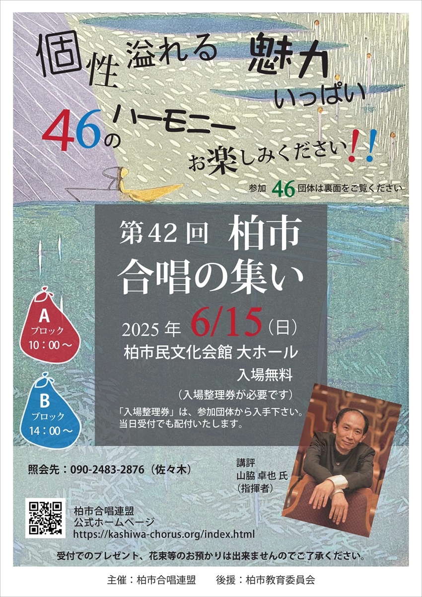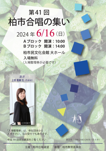 23日の日曜日は朝から「第38回柏市民による合唱の集い」が開催された。今回は48団体が参加して、終日日頃の練習の成果を発表し合った。講評はあの相澤直人先生。昨年に続き今回も柏市に来ていただいた。中間ではその相澤先生指揮、山下祐加先生のピアノで合唱講習会参加の250名の大合唱の演奏も。終日会場には千人近いお客様が来場、参加団体メンバーも最後まで熱心に他団体の演奏に聞き入った。(S氏のfacebookより) |